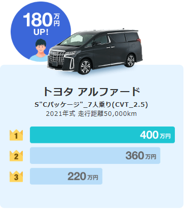 提携業者が多いほど、あなたの車に対する競争率が上がり、結果的に査定額が上がります。