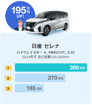 複数の買取業者があなたの車を「競って」買い取るシステムです。