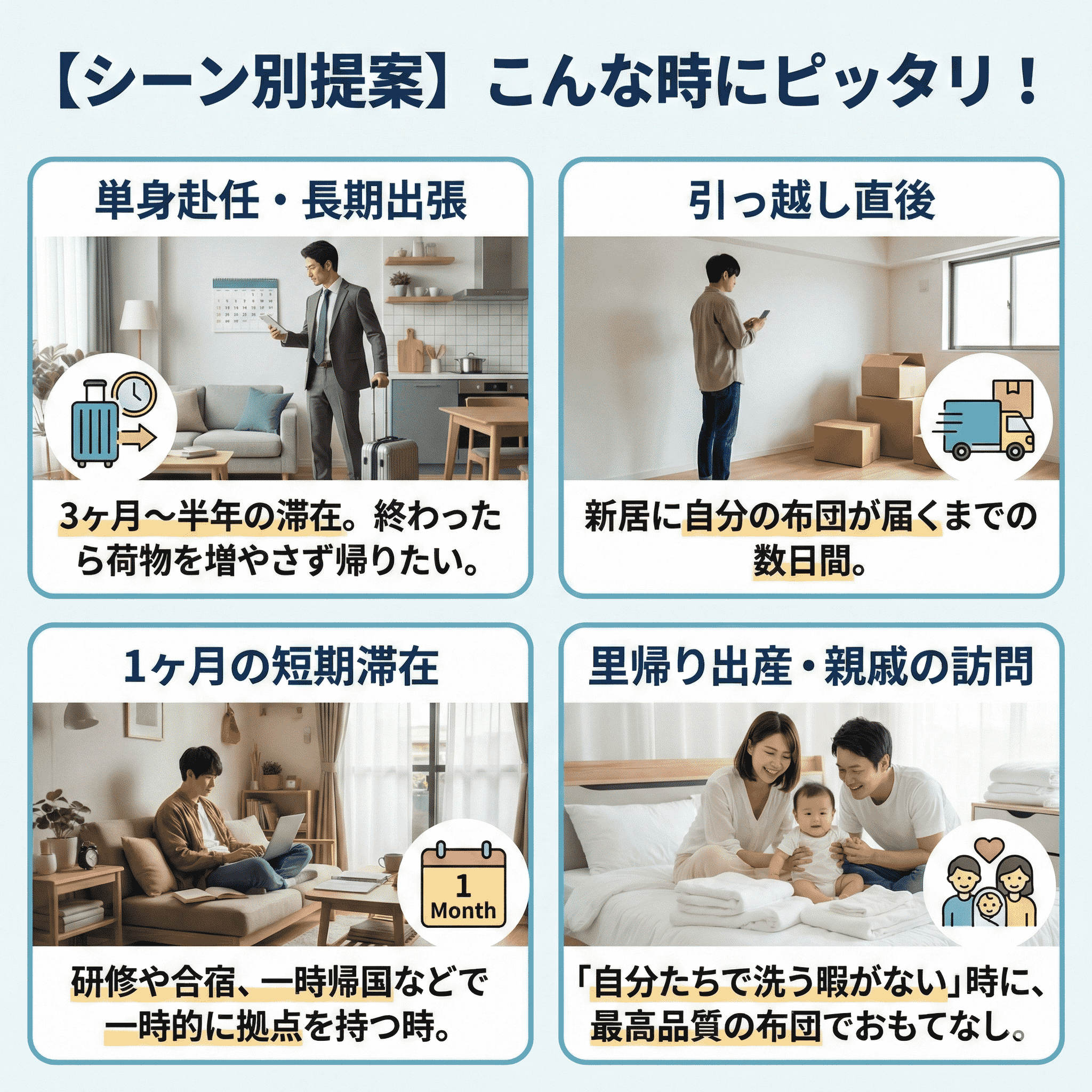 ・リフォームや引っ越しで一時的に寝具が必要な方