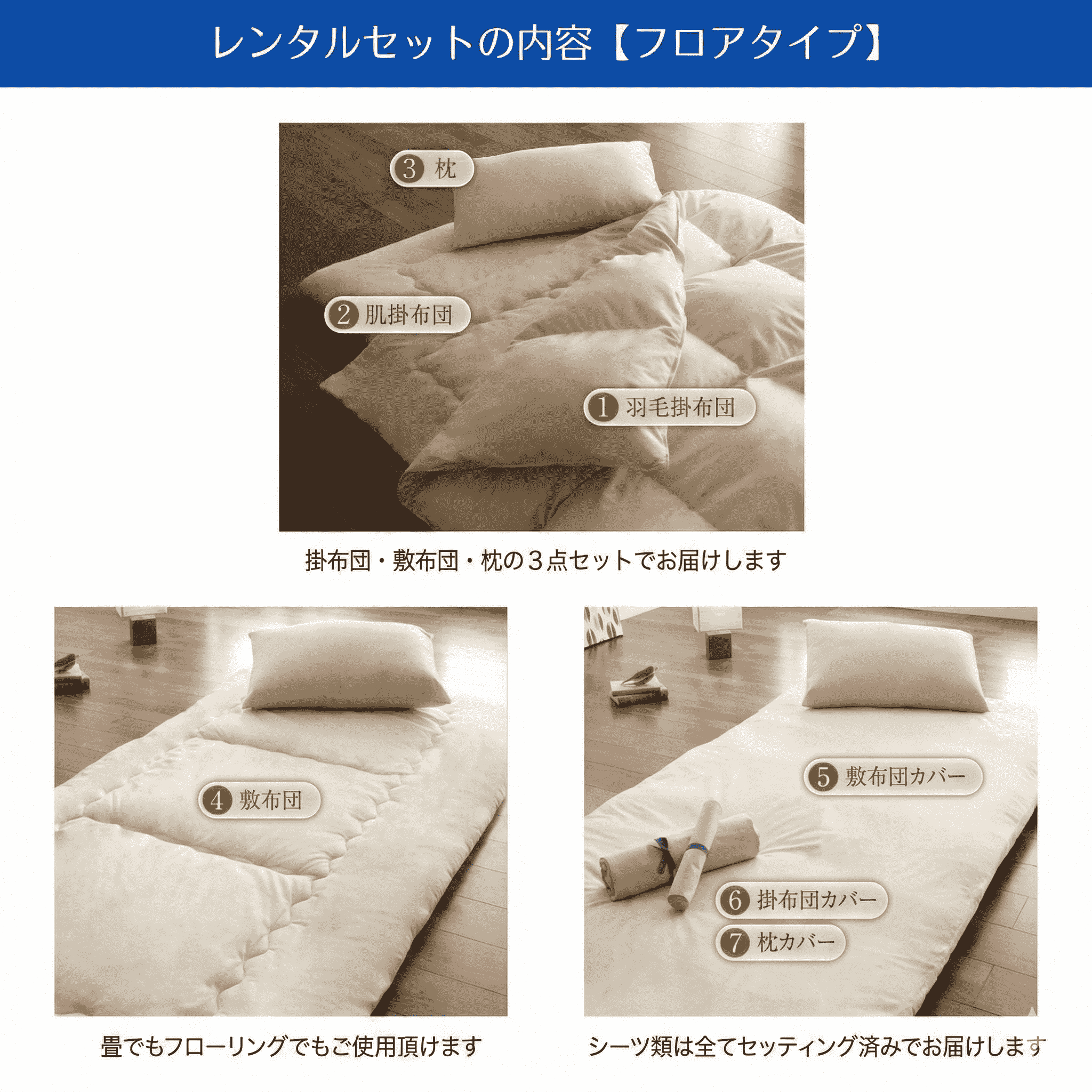 | 1ヶ月布団料金(税込) | 約14,000円(個別見積) |