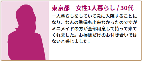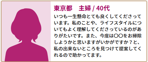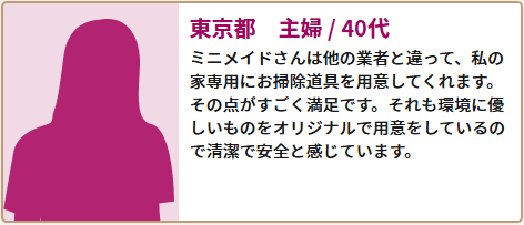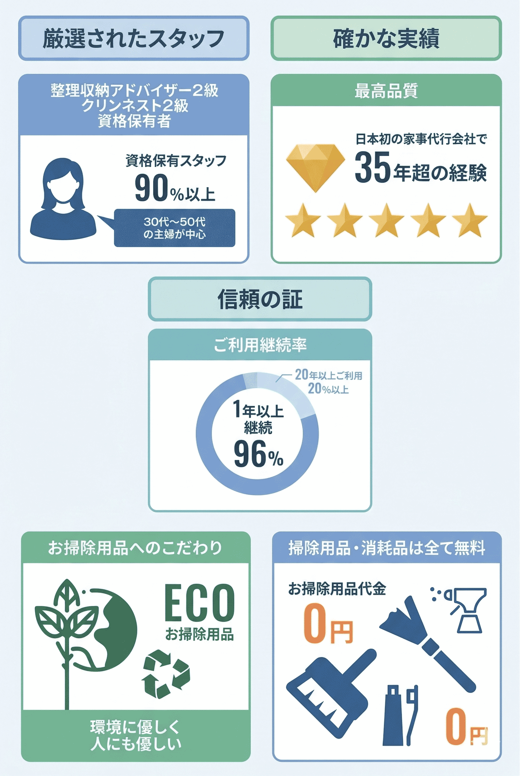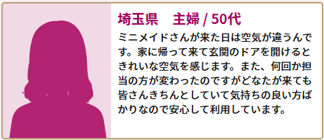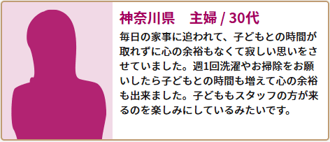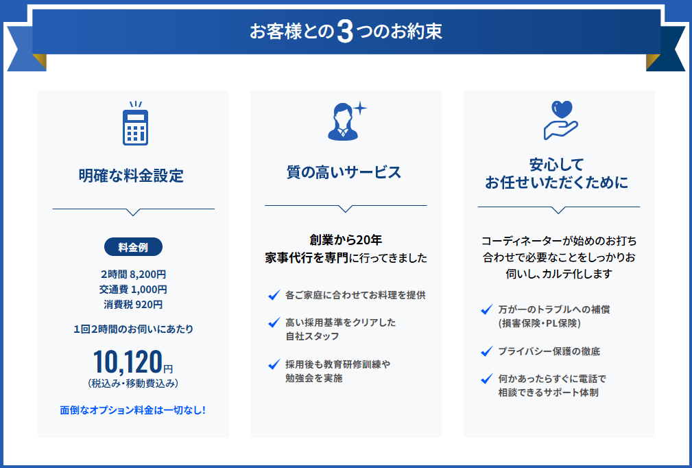 | 特徴 | ![]() 日本初の家事代行 高い満足度 |