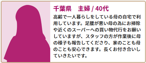 ・体力的に家事が負担になってきた方や、遠方の親御様の生活サポートに。